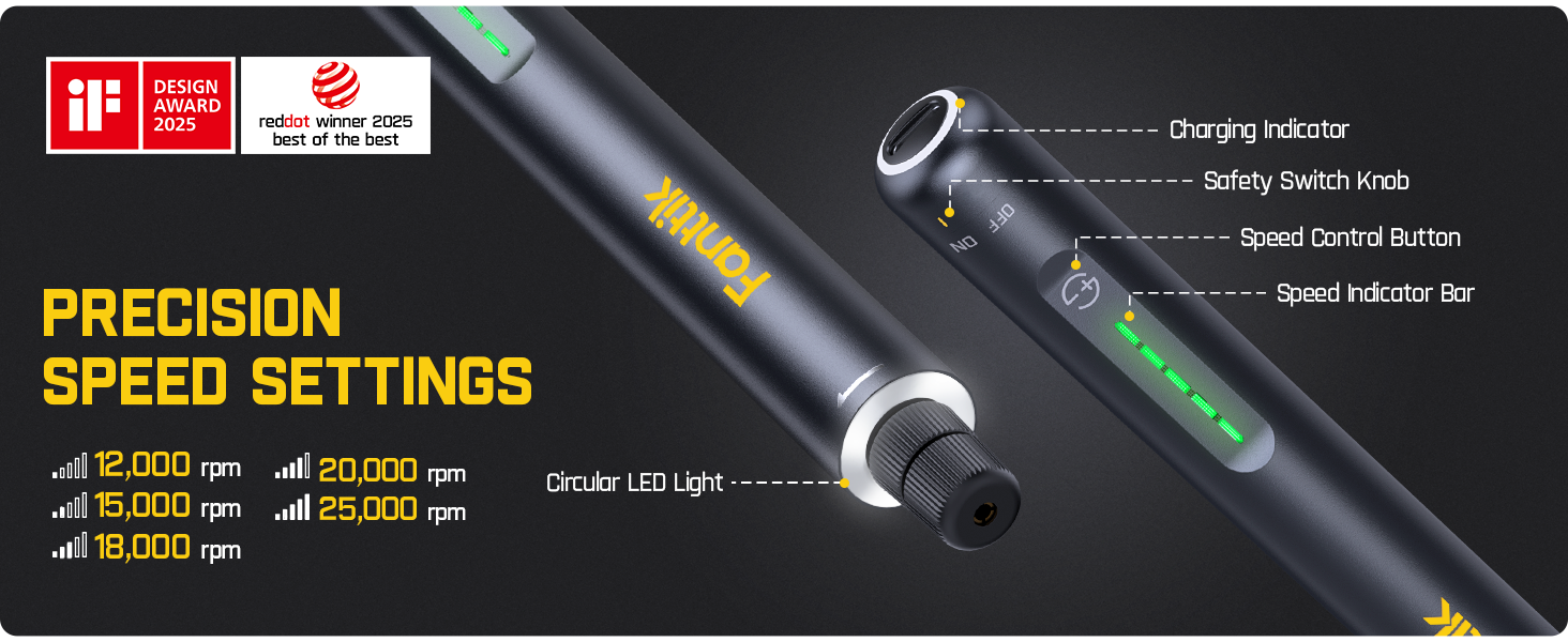 With 5 adjustable speed levels, it easily handles engraving, polishing, drilling, grinding, and fine detail work—powerful output with less heat buildup.